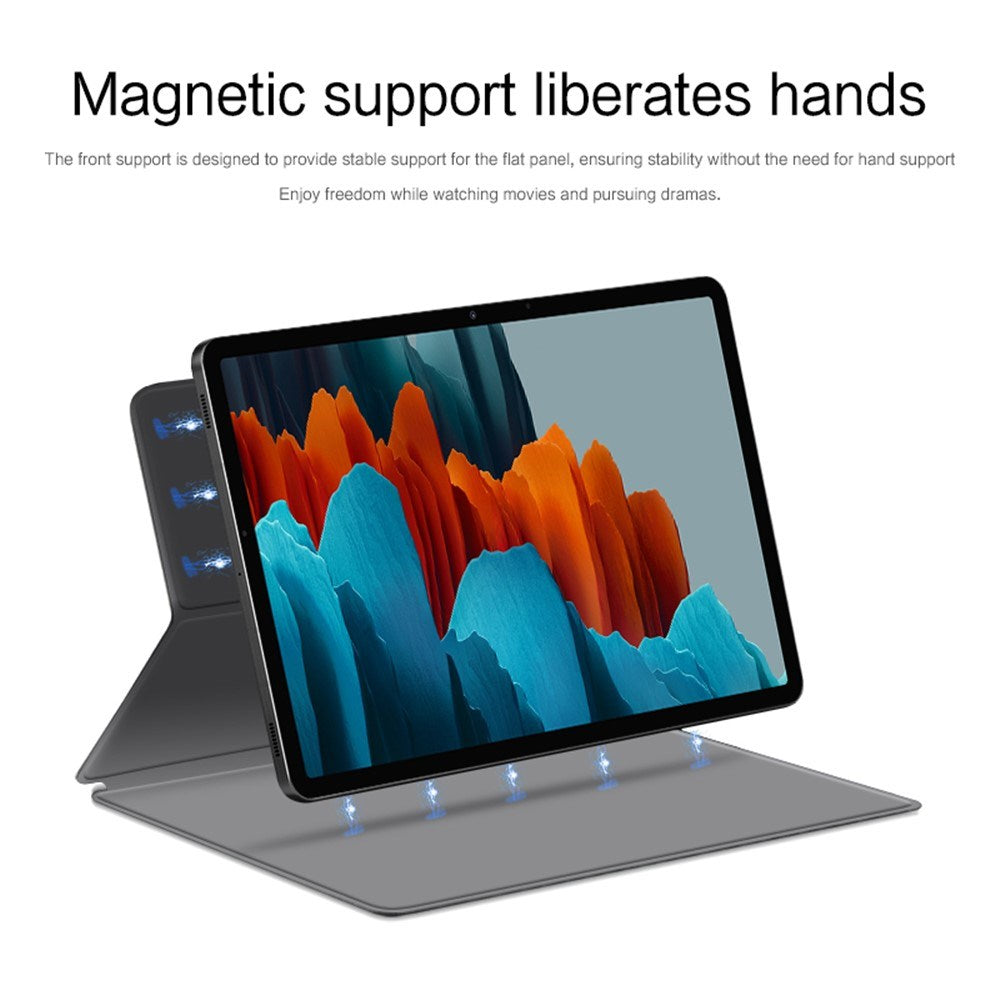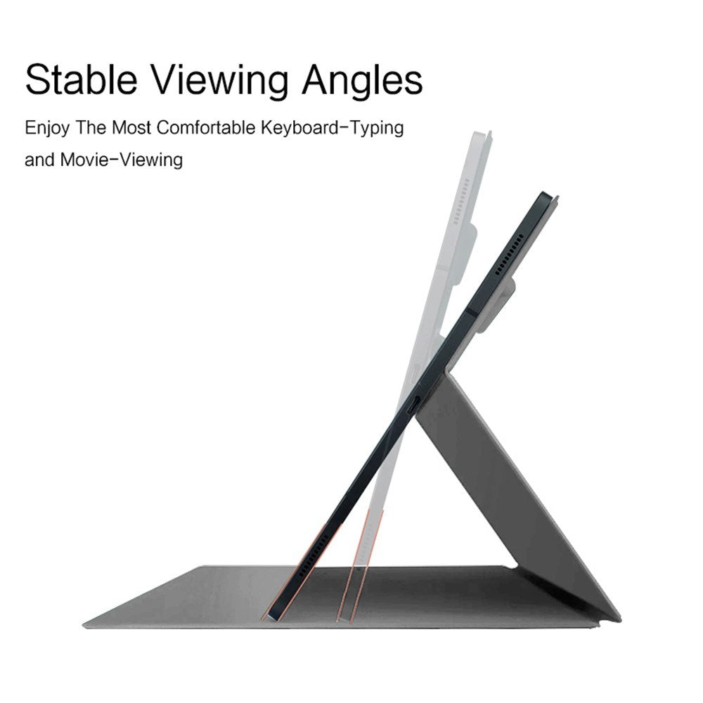 Det integrerade magnetiska stället ger stabila visningsvinklar utan att du behöver hålla i plattan. Den smarta auto wake/sleep-funktionen tänder automatiskt skärmen när fodralet öppnas och släcker den när det stängs - perfekt för att spara batteri.