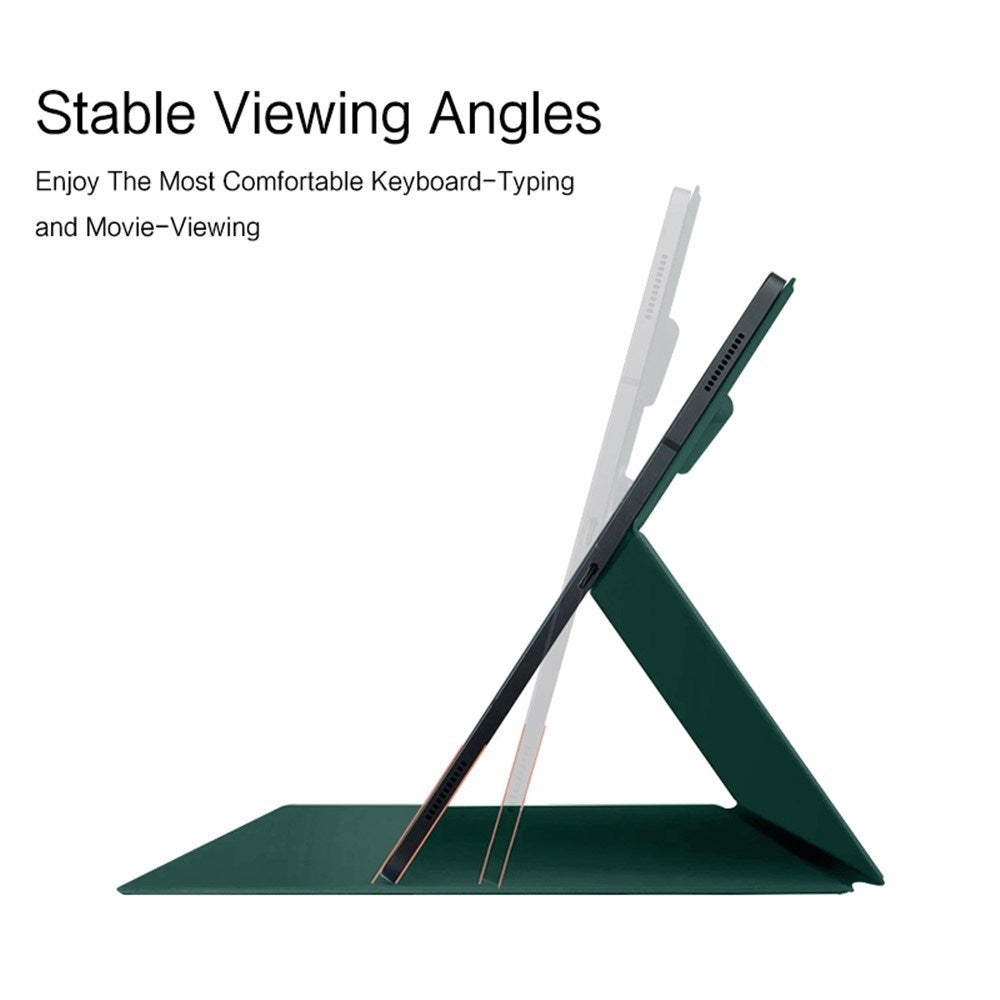 Det integrerade magnetiska stället ger stabila visningsvinklar utan att du behöver hålla i plattan. Den smarta auto wake/sleep-funktionen tänder automatiskt skärmen när fodralet öppnas och släcker den när det stängs - perfekt för att spara batteri.