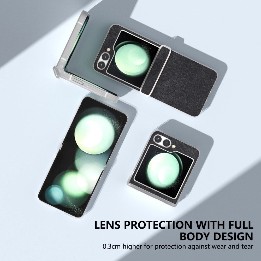 Samsung Galaxy Z Flip7 FE / Flip6 Läderklädd Plast Skal - Svart