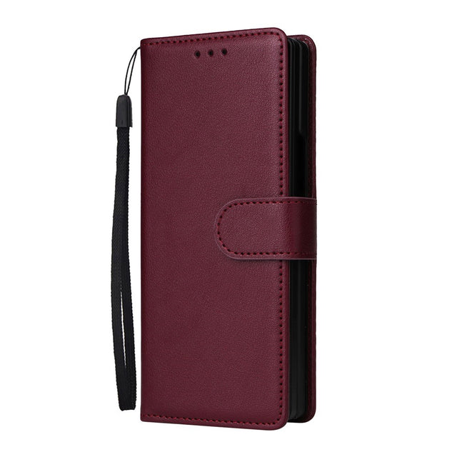 Samsung Galaxy Z Fold6 Konstläder Fodral m. Korthållare & Rem - Mörkröd