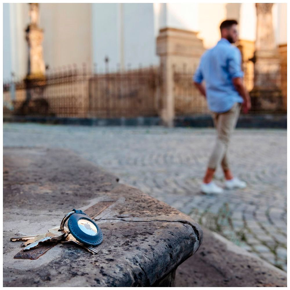 Airtag Äkta Läderfodral med Karbinhake - Blå