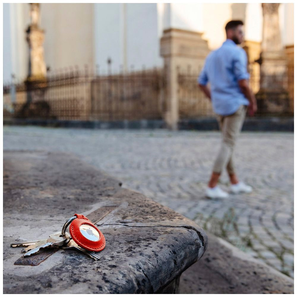 Airtag Äkta Läderfodral med Karbinhake - Röd