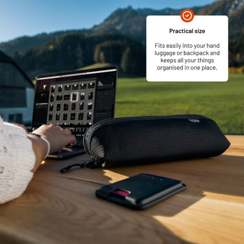 Väskan är utrustad med en pålitlig dragkedja som håller dina tillhörigheter säkra. De solida sidorna bidrar ytterligare till skyddet och gör det enkelt att organisera dina saker. Med måtten 260 x 79 x 100 mm passar den perfekt i vilken väska eller ryggsäck som helst.