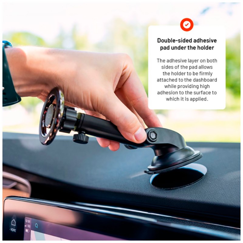 Om du saknar en stabil yta för din GPS, mobilhållare eller andra enheter med sugkopp, kan denna självhäftande silikonmonteringsplatta från Fixed vara lösningen. Plattan fästs enkelt med självhäftande tejp på vilken yta som helst, och sedan kan sugkoppen monteras. Detta gör det möjligt att använda sugkoppar på ytor där de normalt inte skulle fästa, vilket gör den idealisk för exempelvis bilens instrumentbräda för att placera en mobilhållare.