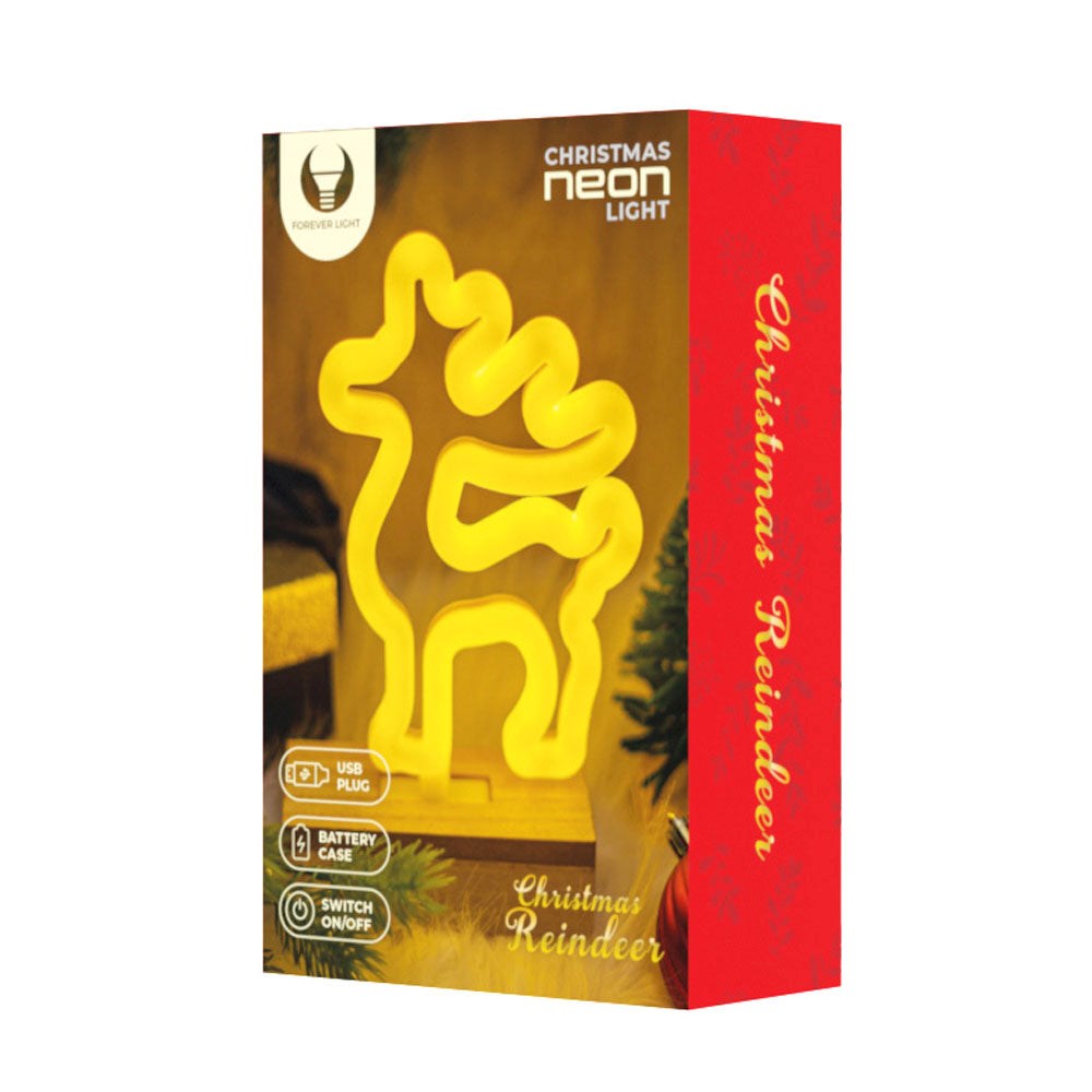Light Neon Juldekoration med Träfot LED - Varmvitt Ljus med Renar