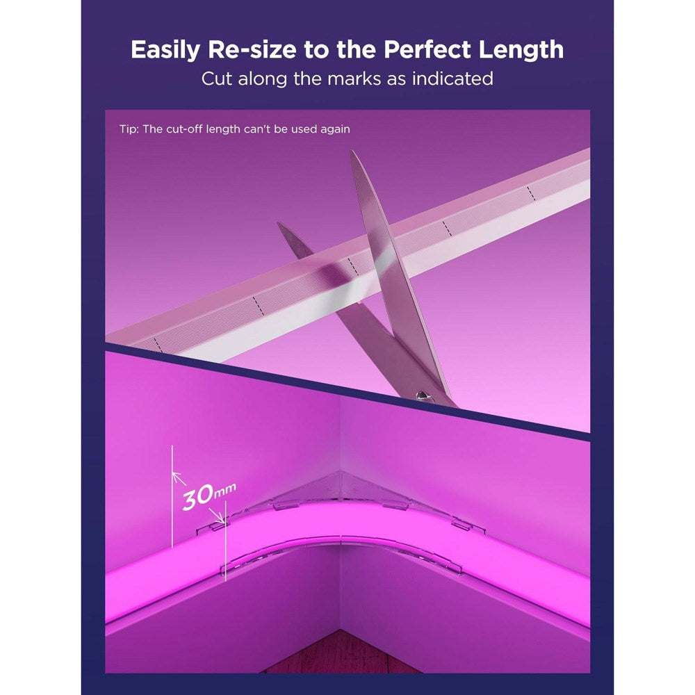 LED-ljuset är inkapslat i silikon, vilket både säkerställer hållbarhet och ger en mjuk och behaglig belysning som inte är ansträngande för ögonen. Den 90° vinkeln gör att ljuslisten passar perfekt i hörn, till exempel mellan vägg och golvlist, vilket gör Govee Neon Rope Light till ett diskret tillskott i ditt hem.