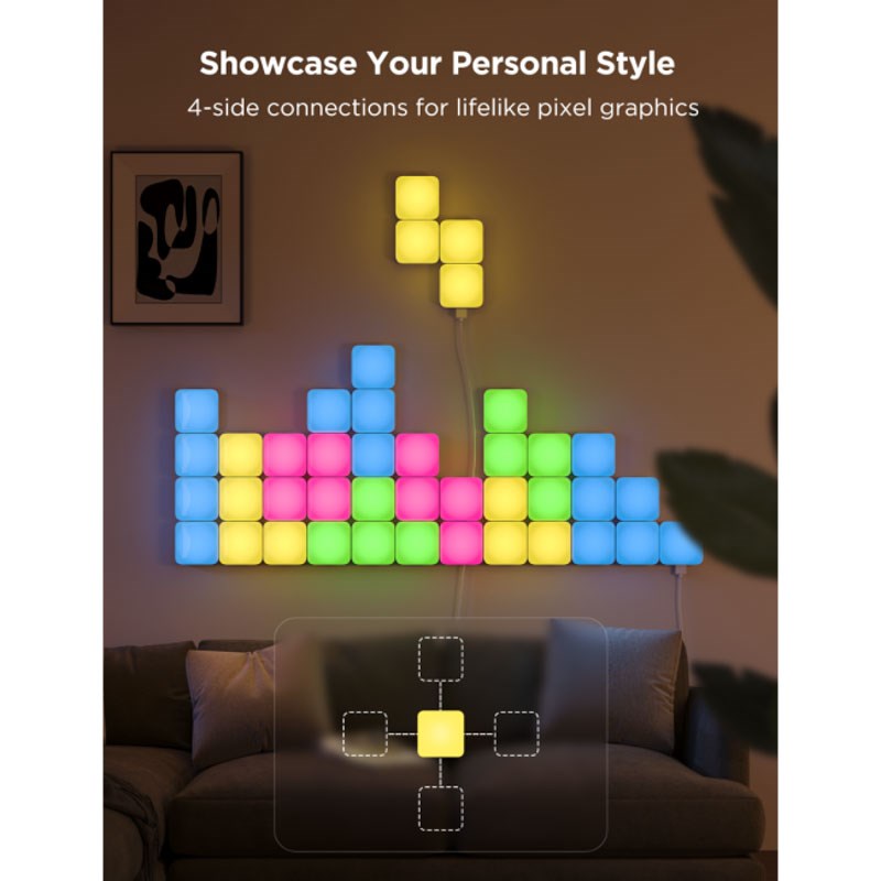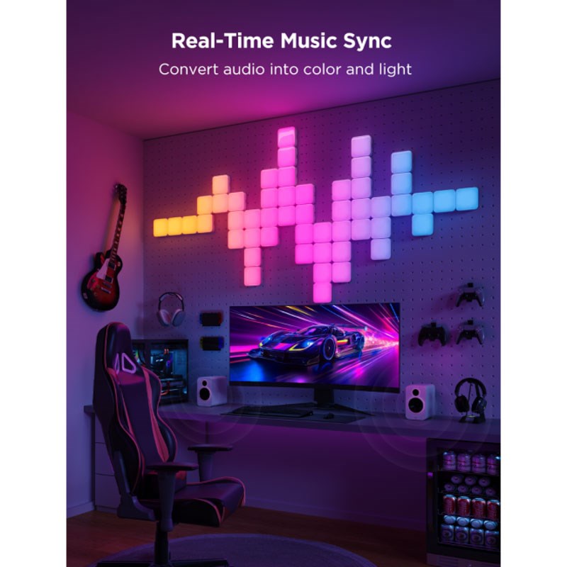 Oavsett om du vill hänga upp dessa paneler i vardagsrummet, barnrummet eller kanske över din gaming-dator, så har du möjlighet att göra det. Detta paket innehåller 10 paneler, men du kan koppla ihop upp till 70 individuella ljuspaneler till en och samma form. Panelerna är designade så att de kan kopplas ihop på alla fyra sidor, vilket betyder att endast fantasin sätter gränser för vilka designer och former du kan skapa med dessa Govee Mini Panel Lights.