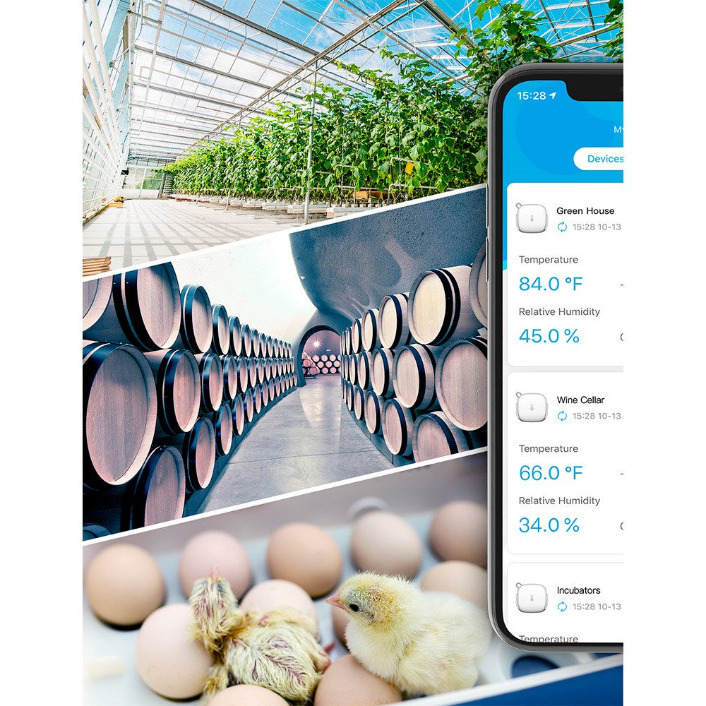 Via tillhörande app har du möjlighet att ändra och anpassa olika inställningar, allt från din smartphone eller surfplatta. Ställ in individuella temperatur- och luftfuktighetsgränser i appen och få omedelbara varningar om dina nivåer överskrids. Håll dig enkelt uppdaterad.
