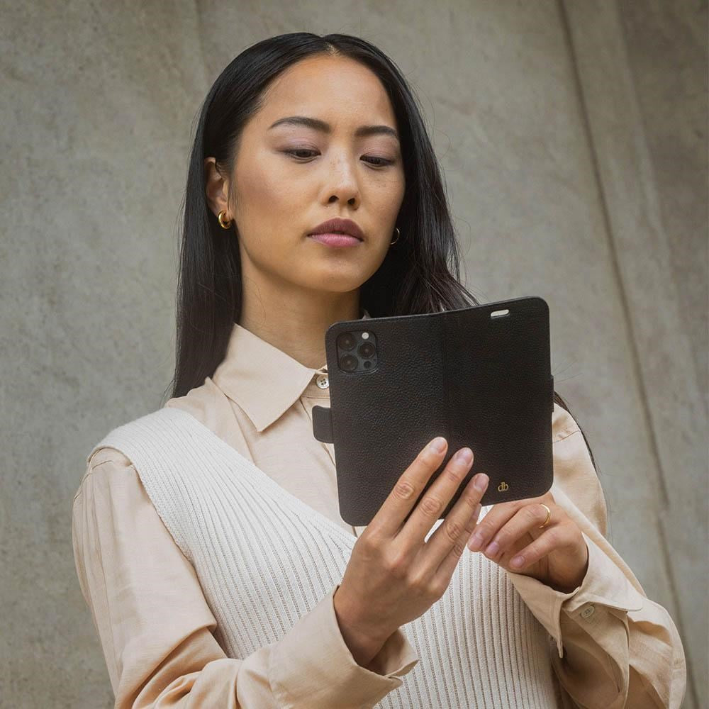Exklusivt dbramante1928 New York plånboksfodral för iPhone 13 Mini, som är extremt elegant och har en tidlös design.