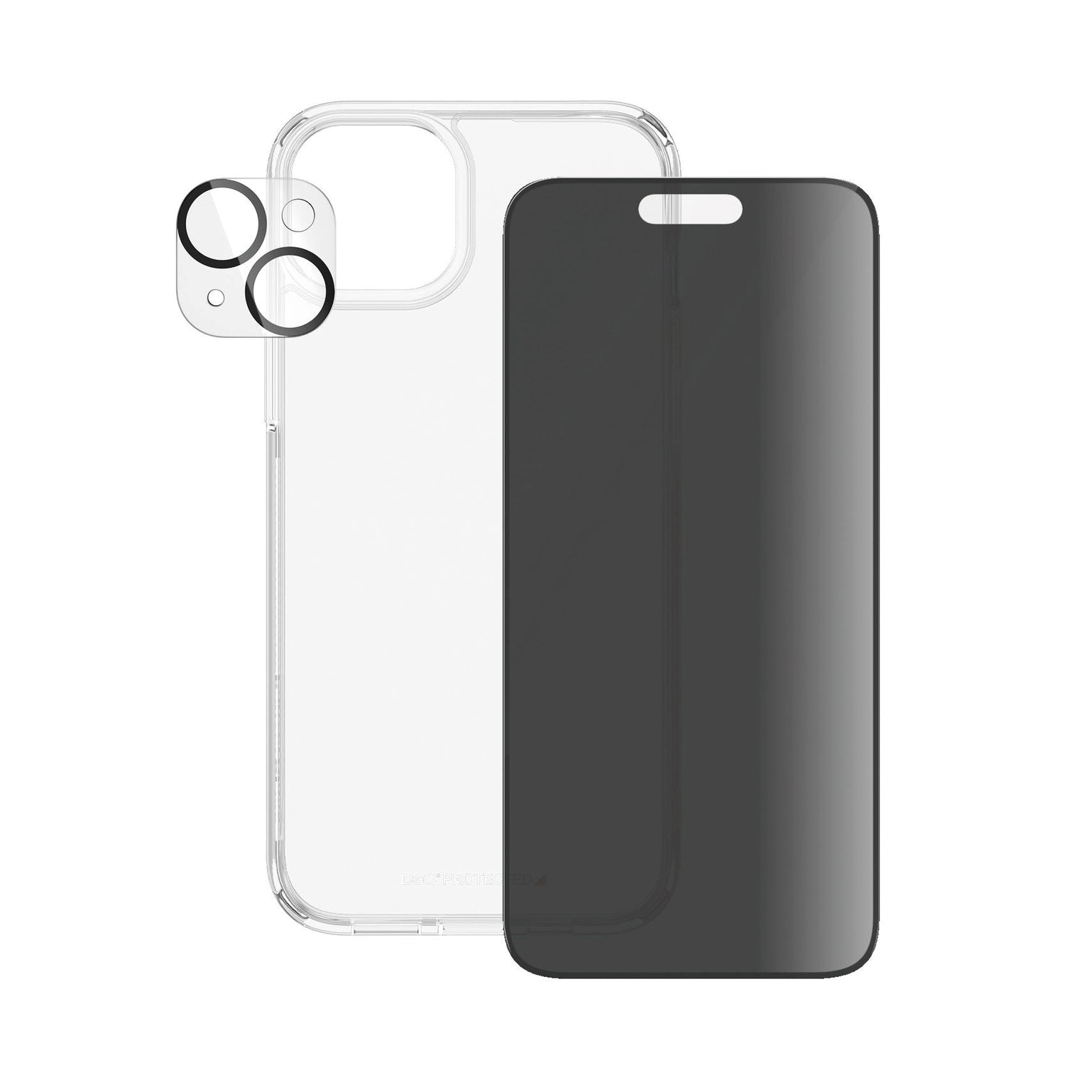 iPhone 15 Plus PanzerGlass 3-i-1 Bundle m. EasyAligner - Privacy Skärmskydd (UWF) / Skal / Kameraskydd - Genomskinlig / Svart