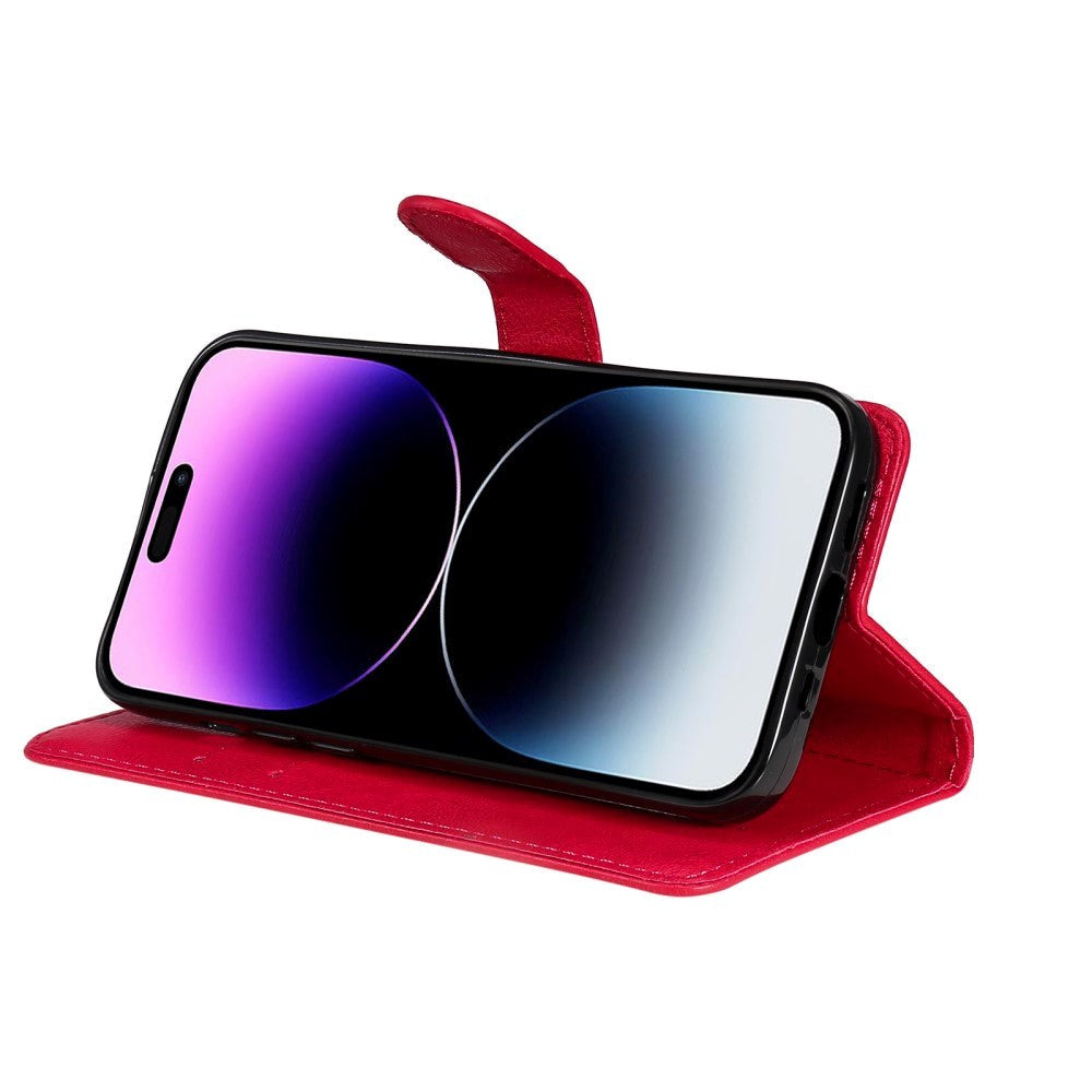iPhone 15 Pro Max Läder Plånboksfodral med Rem - Röd