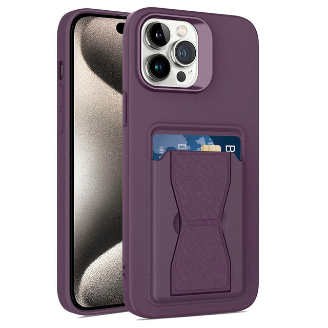 iPhone 15 Pro Max Skal Flexibel Plast med Korthållare & Kickstand - Lilla