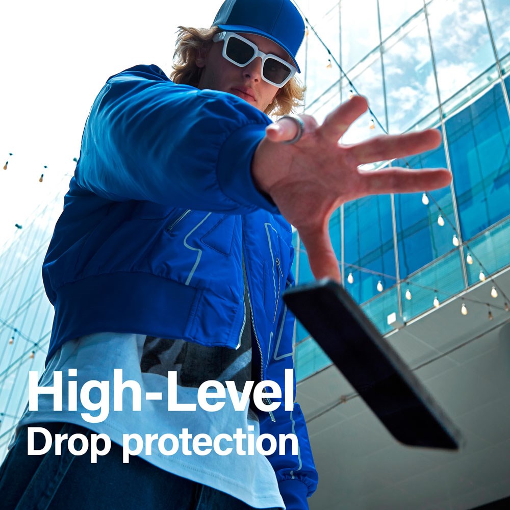 (1) Glaset går helt ut i kanterna och ger därmed ett mycket gott skydd, samtidigt som det är möjligt att använda ett mobilskal medan skärmskyddet är monterat. Detta ger ett ultimat skydd för både framsidan och baksidan på din smartphone.