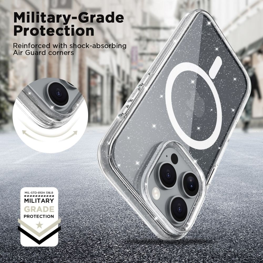 iPhone 16 Pro Max Tech-Protect Flexair Hybrid Skal - MagSafe-kompatibelt - Genomskinlig / Glitter