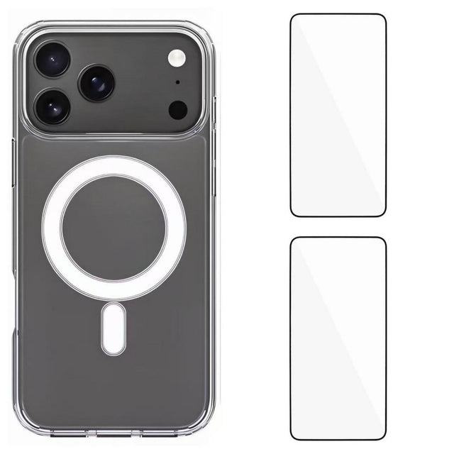 Detta set innehåller 1 x hybridskal med MagSafe för iPhone 17 Pro Max och 2 x skärmskydd i härdat glas.