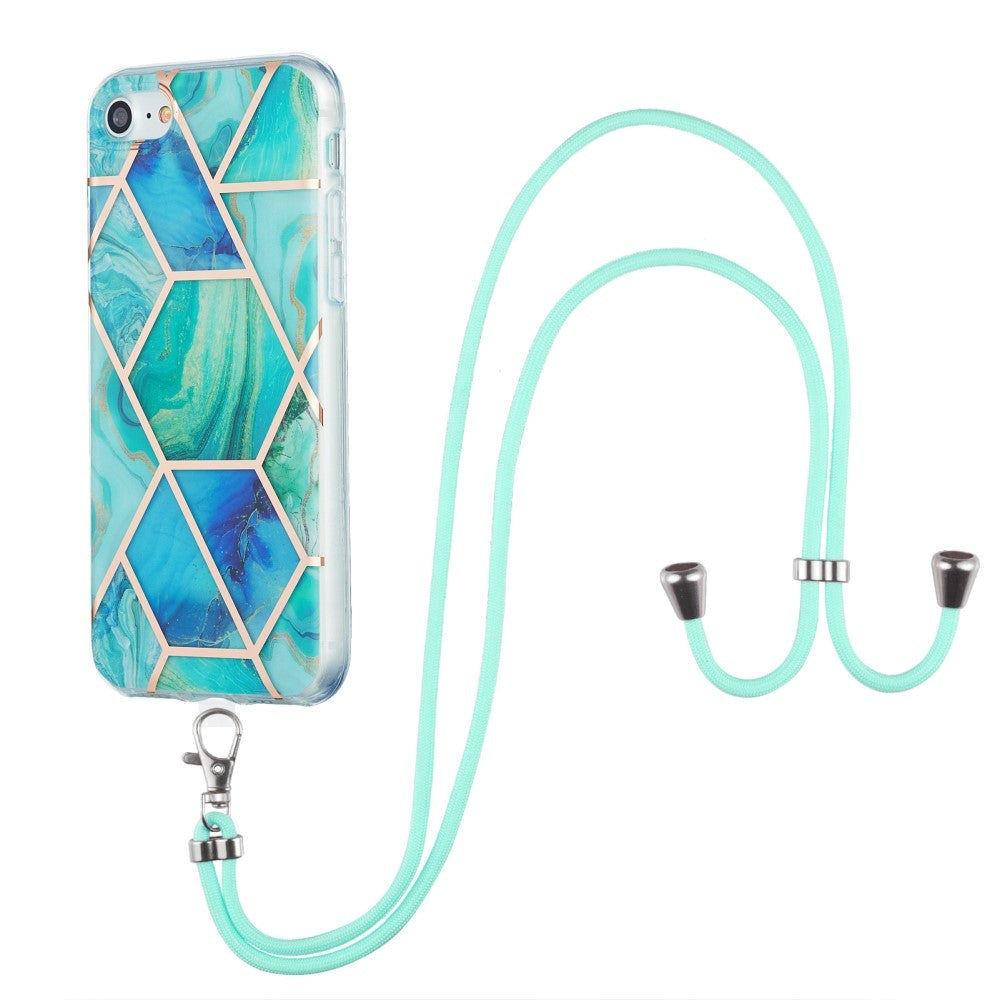 iPhone SE (2022/2020) / 8 / 7 Skal Hybridplast med Rem - Grön Marmor