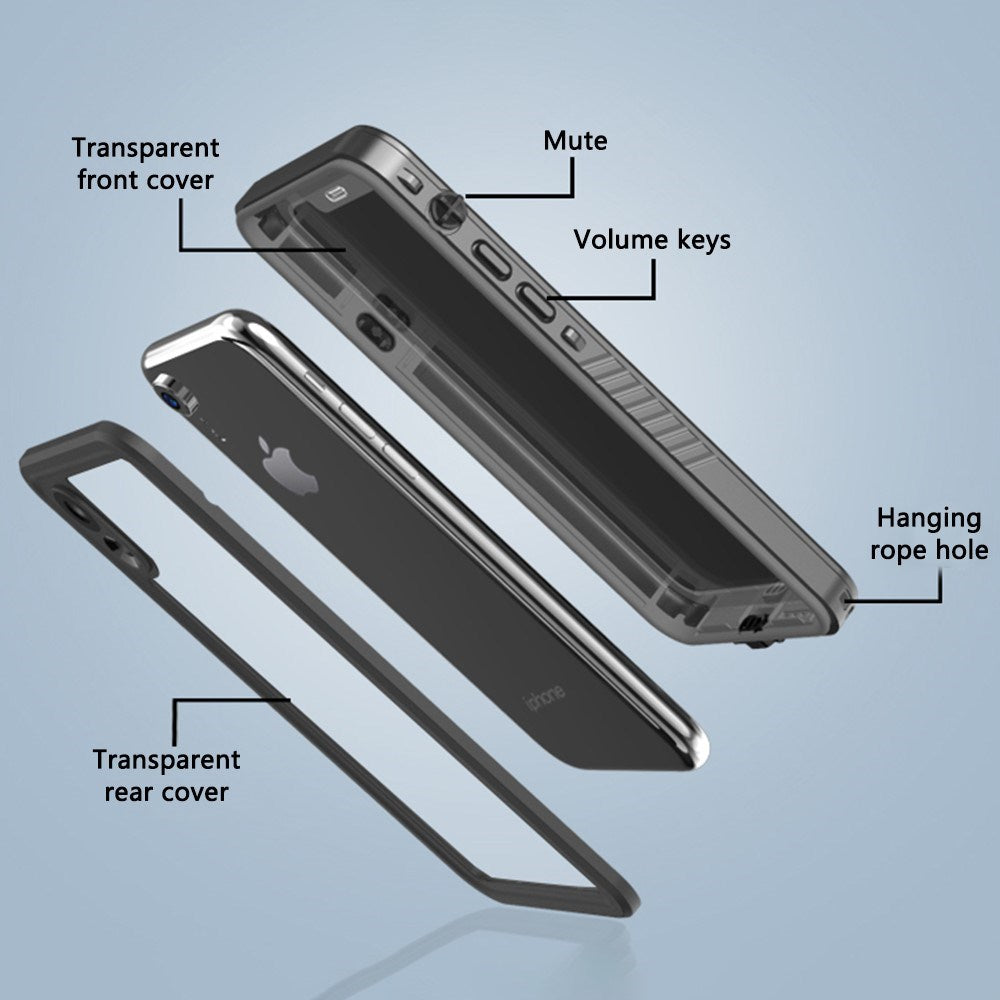 iPhone XR - Vattentätt Hybrid Skal m. Inbyggt Skärmskyddsfilm - Genomskinlig / Svart