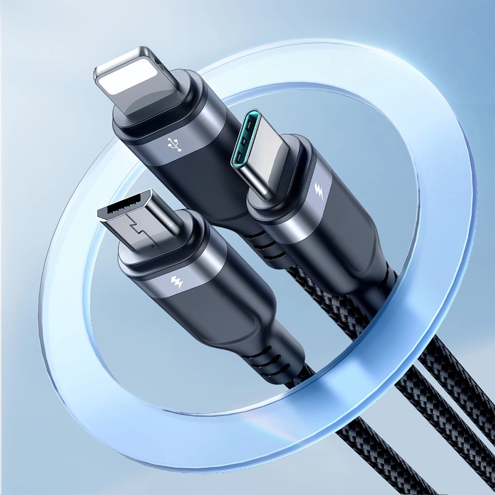Med denna smarta 3-i-1-laddkabel från Joyroom kan du enkelt ladda upp till tre enheter samtidigt. Kabeln stöder micro-USB, USB-C och Lightning, vilket gör den kompatibel med olika typer av enheter.