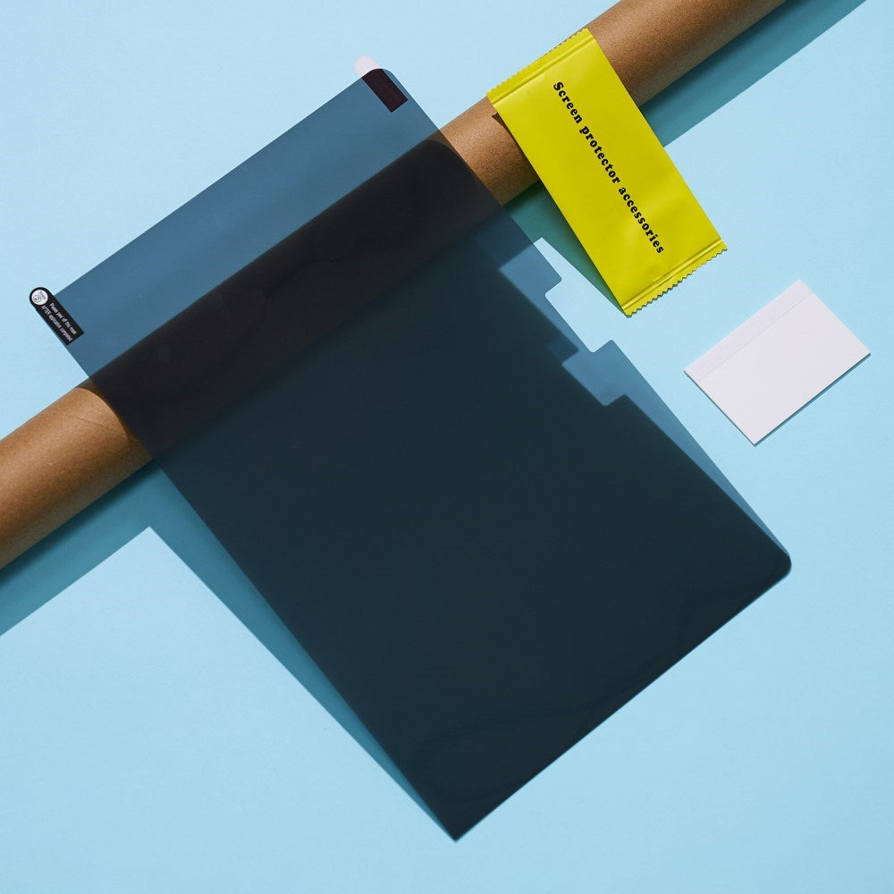Skärmskyddet har privacy-teknologi som förhindrar nyfikna blickar från sidan. Endast personer som sitter rakt framför skärmen kan se innehållet tydligt, vilket gör det idealiskt för offentliga platser.