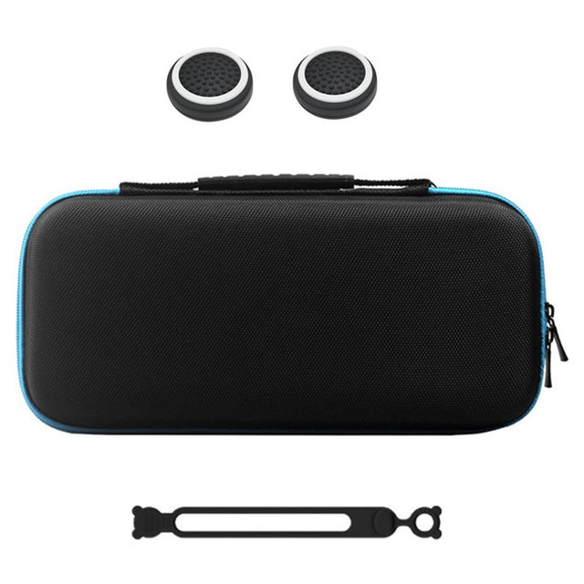 Nintendo Switch 2 Förvaringsväska m. Silikon Kabelbindare & Joystick Grip Caps - Svart / Blå