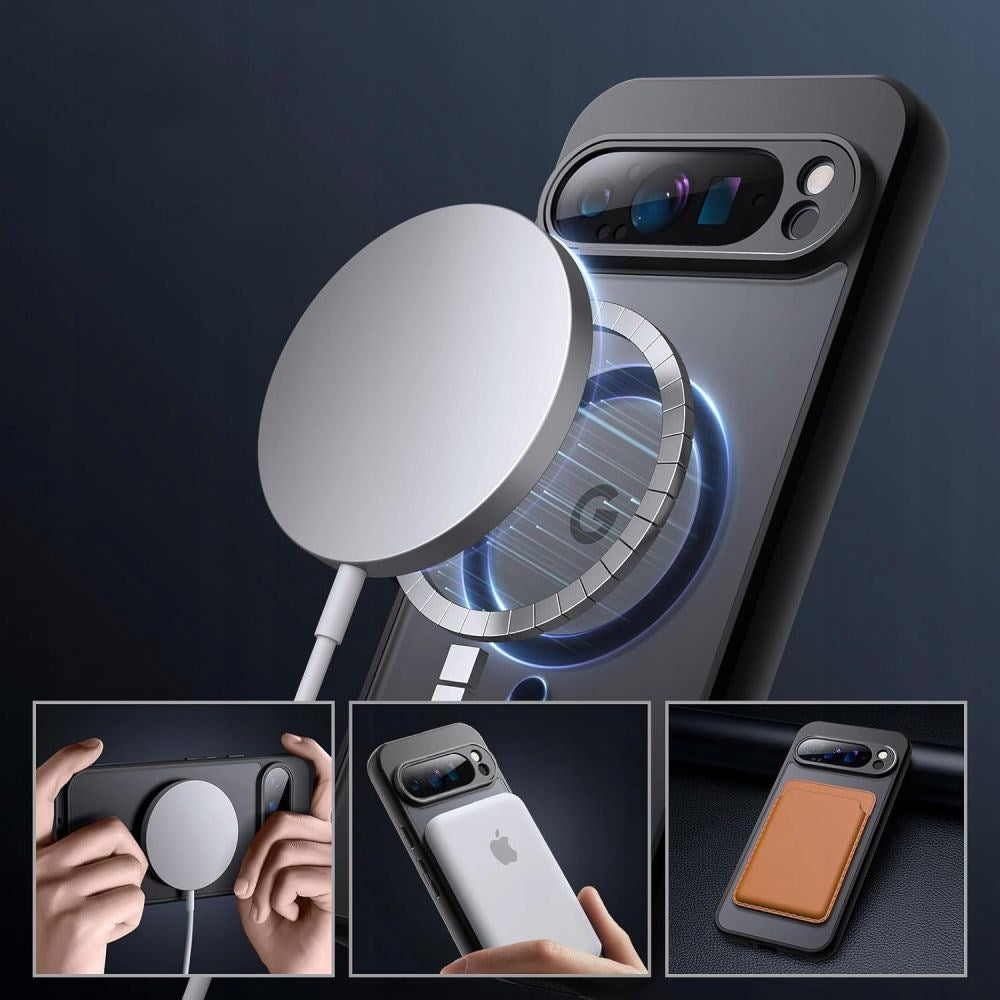 Detta skal är MagSafe-kompatibelt, vilket innebär att det fungerar sömlöst med andra MagSafe-produkter. Inuti skalet finns en cirkulär magnet som säkerställer exakt placering med MagSafe-enheter som trådlösa laddare, korthållare eller bilhållare. Du behöver inte ta bort skalet för trådlös laddning, och magneten säkerställer att din iPhone ligger perfekt på laddningsytan.