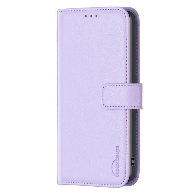 Realme Note 60 / 60x (4G) / C63 (4G) / C61 (4G) Konstläderfodral med Stativ Funktion & Korthållare - Lavendel är i restorder och kommer att skickas så snart den är tillbaka i lager.