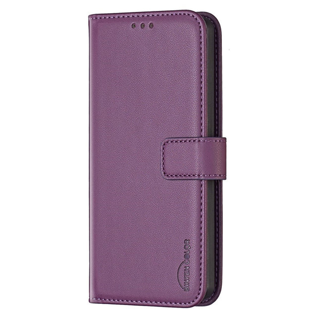 Realme Note 60 / 60x (4G) / C63 (4G) / C61 (4G) Konstläderfodral med Stativ Funktion & Korthållare - Lila är i restorder och kommer att skickas så snart den är tillbaka i lager.