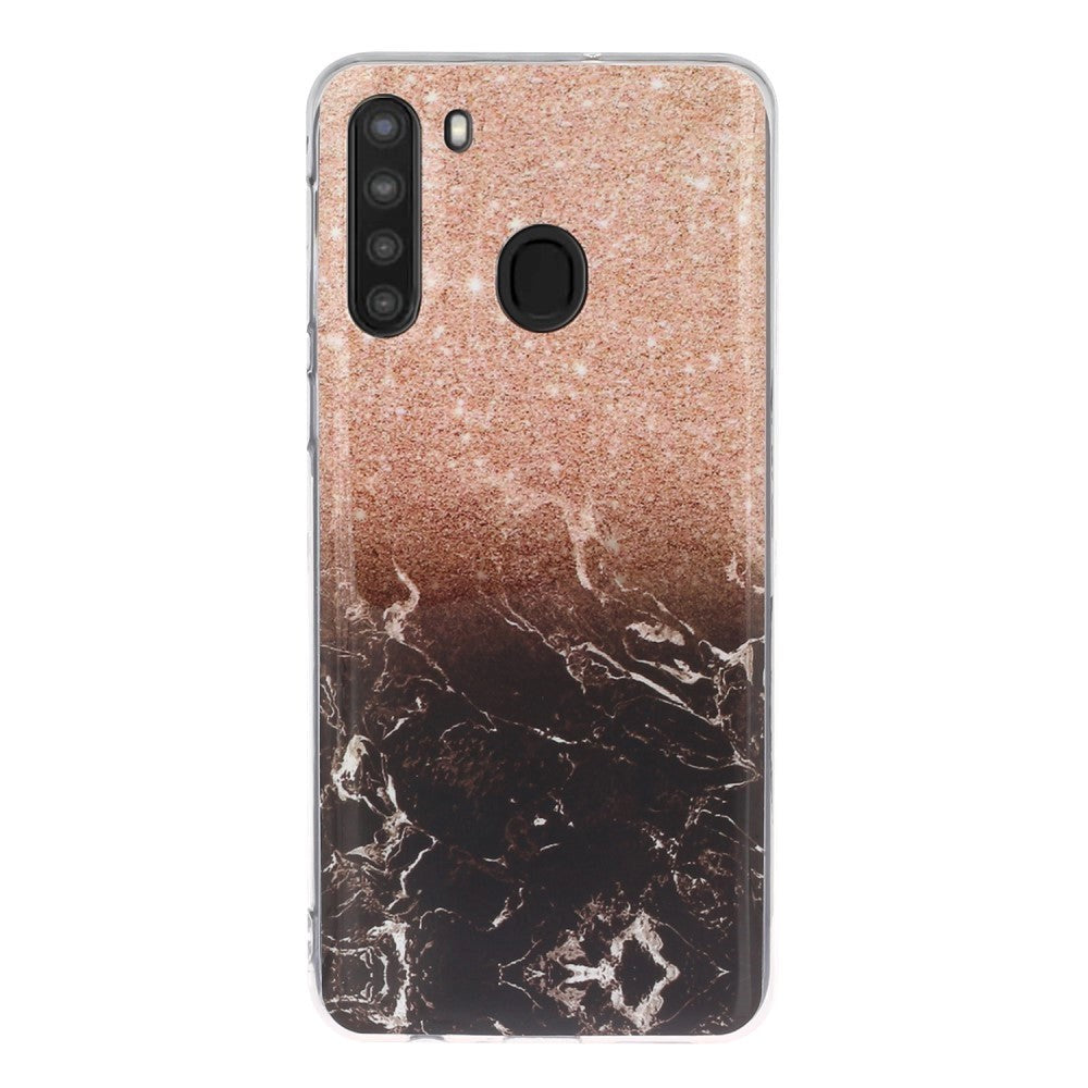 Samsung Galaxy A21 Flexibel plastskal m. Marmortryck - lila marmor