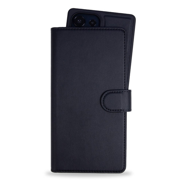Ytan på detta Samsung Galaxy S25 Ultra plånboksfodral är tillverkad av syntetiskt läder, vilket ger ett snyggt utseende. På höger sida av fodralet finns det också ett avtagbart, magnetiskt mobilskal i hård plast, som gör det möjligt att använda skalet separat.