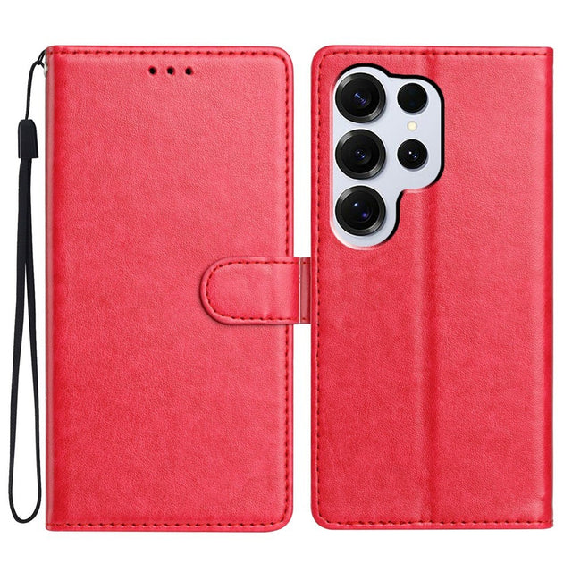 Samsung Galaxy S26 Ultra EIDERWOOD Konstläder Fodral med Rem & Korthållare - Korallröd