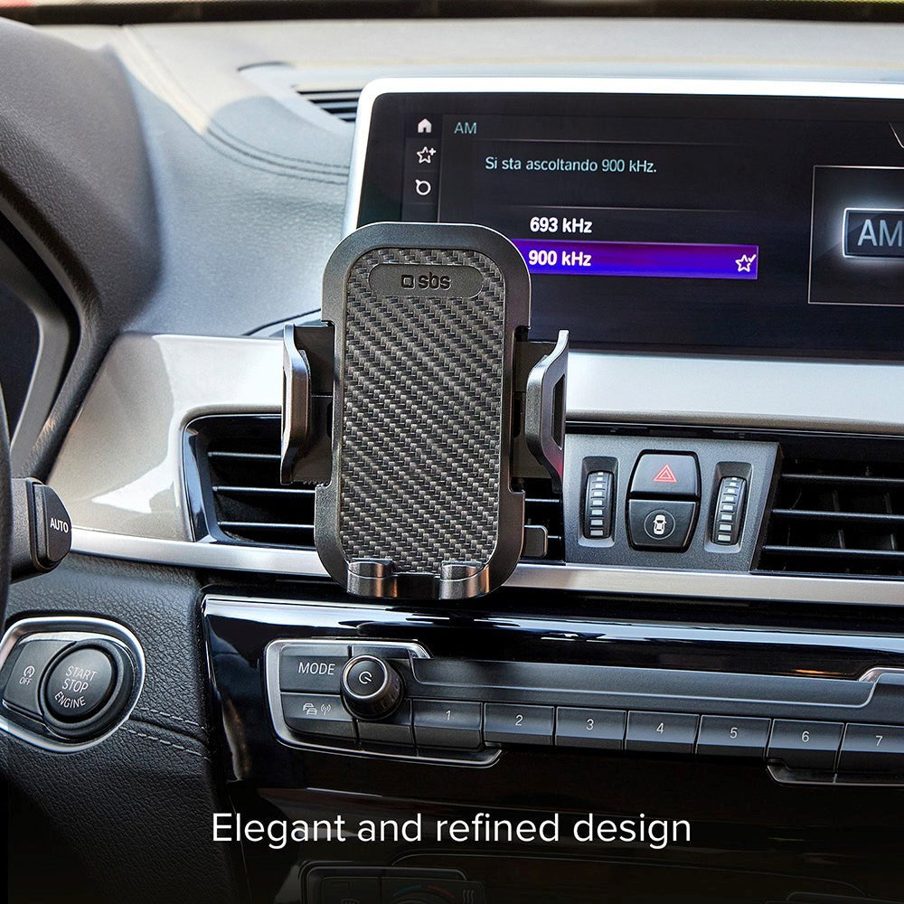 Fastsättningen är enkel, du sätter helt enkelt in ventilationsklämman i den dedikerade öppningen på hållaren. Med den gummibelagda ytan bibehåller bilens ventilation sin renhet och undviker repor.