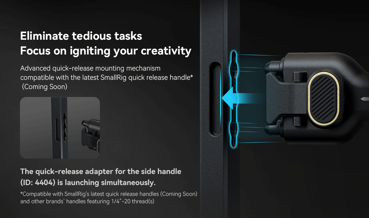 Ett innovativt sätt att montera utrustning på din SmallRig-ram. Adaptern gör monteringen supersnabb och sedan har den flera olika alternativ när det kommer till att välja sidohandtag som den kan användas med.