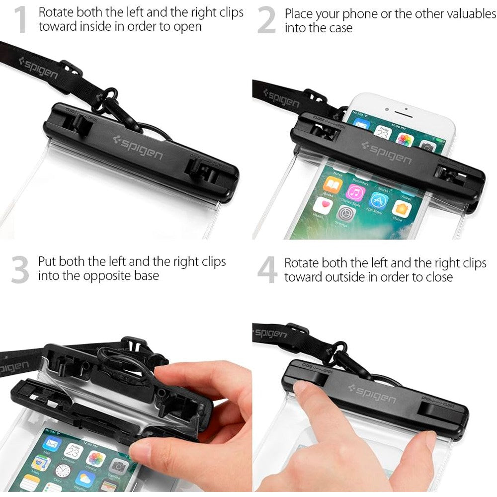 Spigen Universal AquaShield Vattentåligt Skal - Genomskinlig / Svart är i restorder och kommer att skickas så snart den är tillbaka i lager.