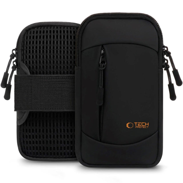 Armbandet har tre praktiska fickor som enkelt rymmer en smartphone upp till 17 cm (6.9 tum) samt små viktiga föremål som nycklar, hörlurar eller kreditkort.