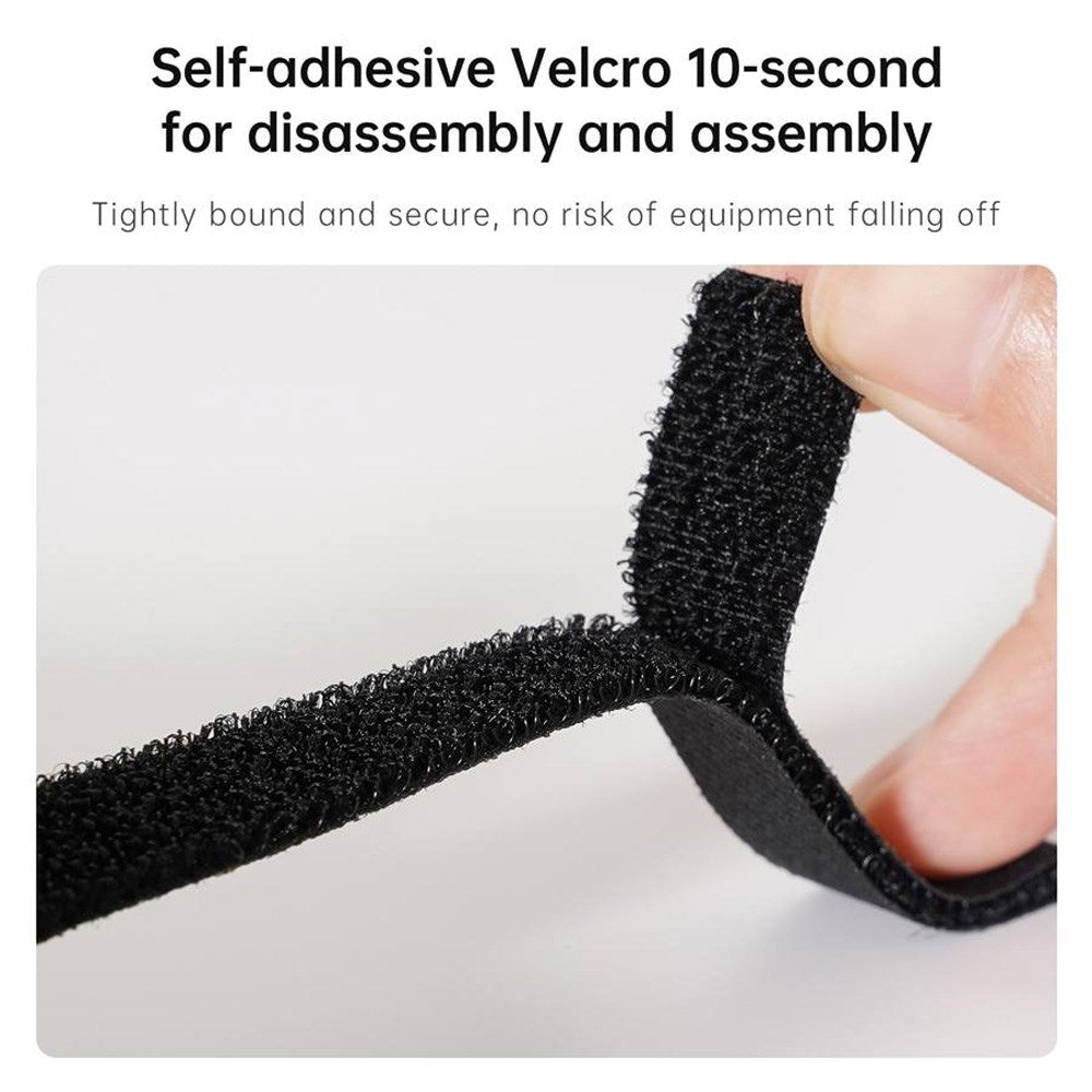 Fästet monteras på hakdelen av hjälmen och spänns fast genom hjälmen med hjälp av kardborreband. Baksidan av fästet, som vetter mot hjälmen, är utrustad med silikon för att förhindra att det glider eller rör sig under färd.