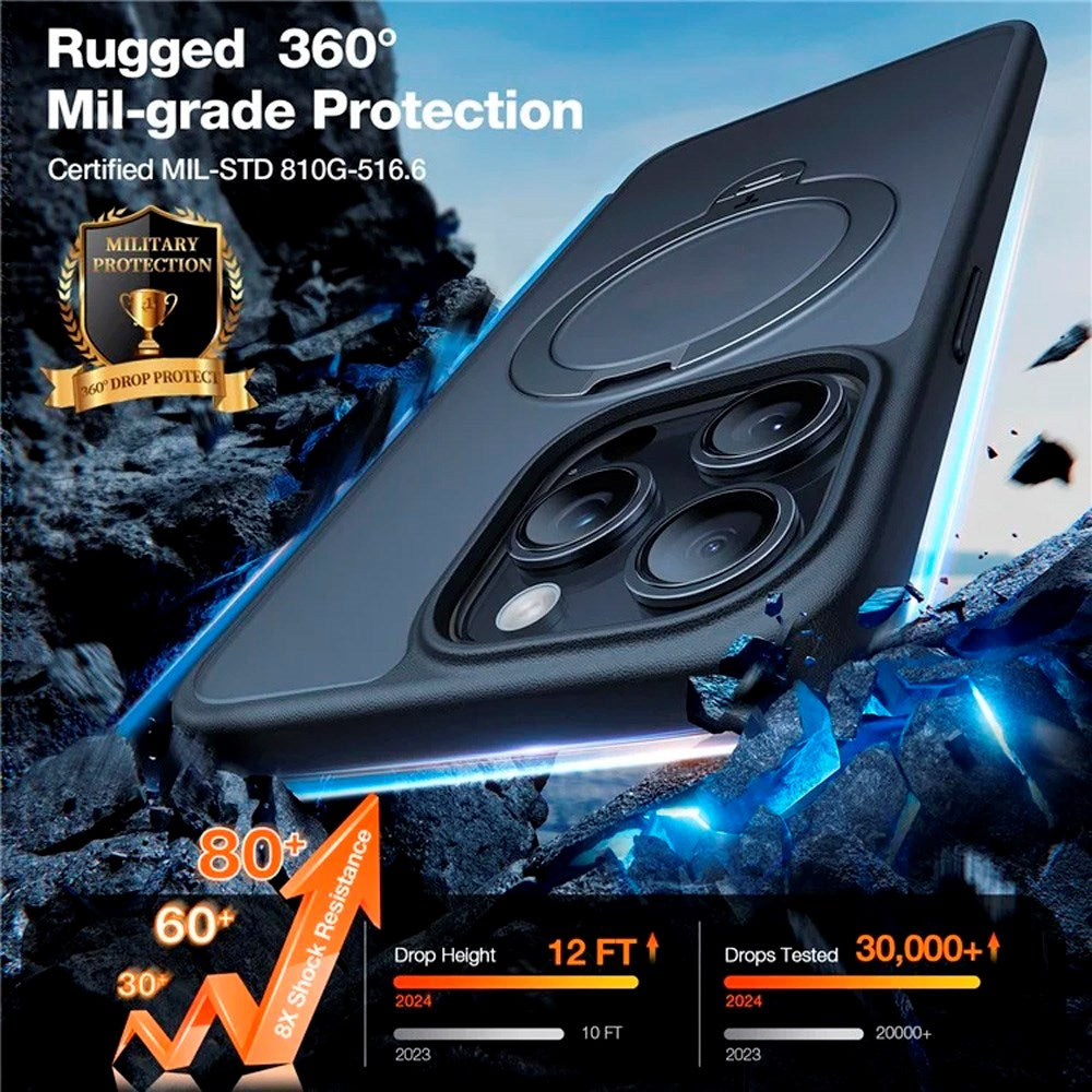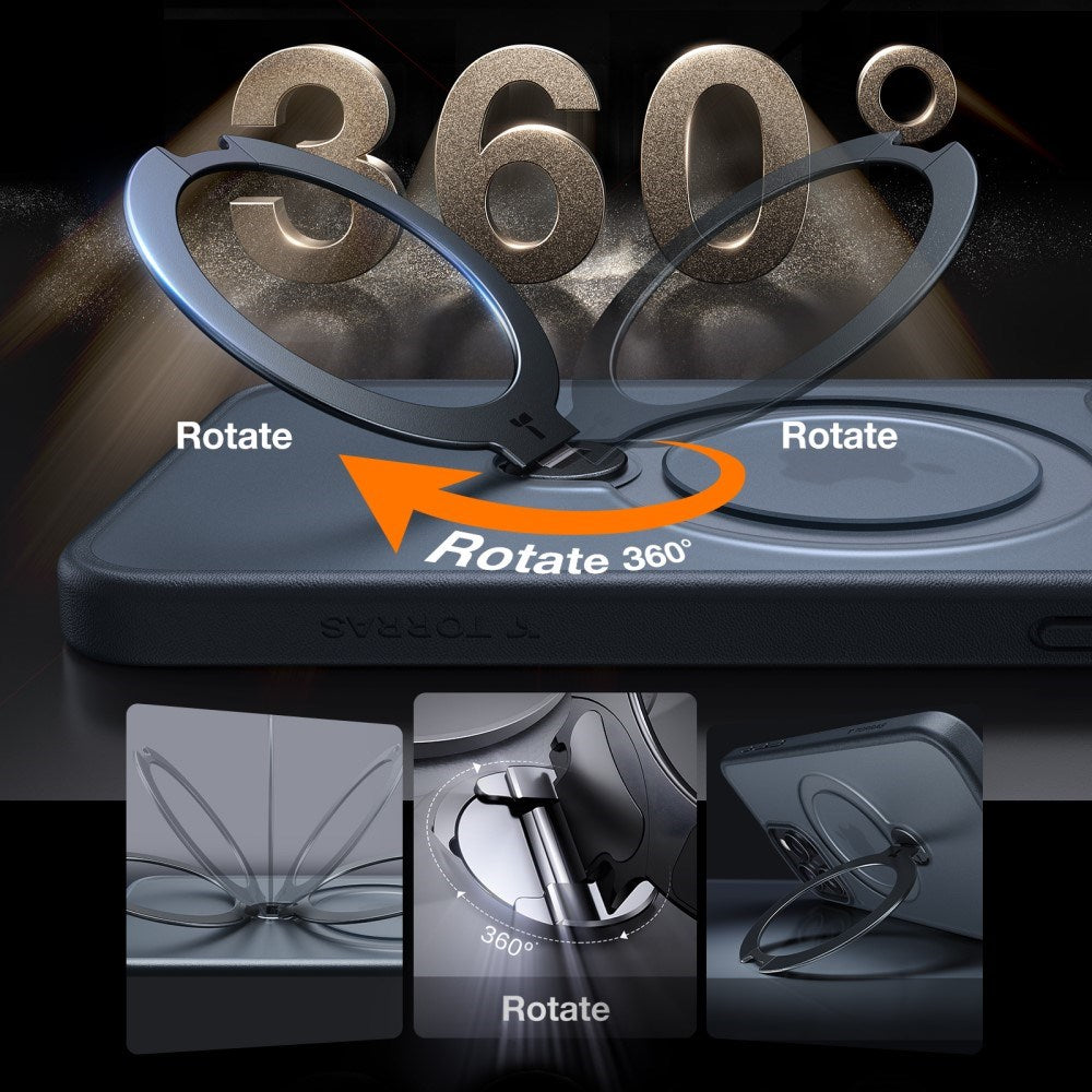 Med den inbyggda 360° stativfunktionen kan du placera din iPhone 15 Pro i en bekväm, handsfree vinkel – perfekt för video eller online-möten.