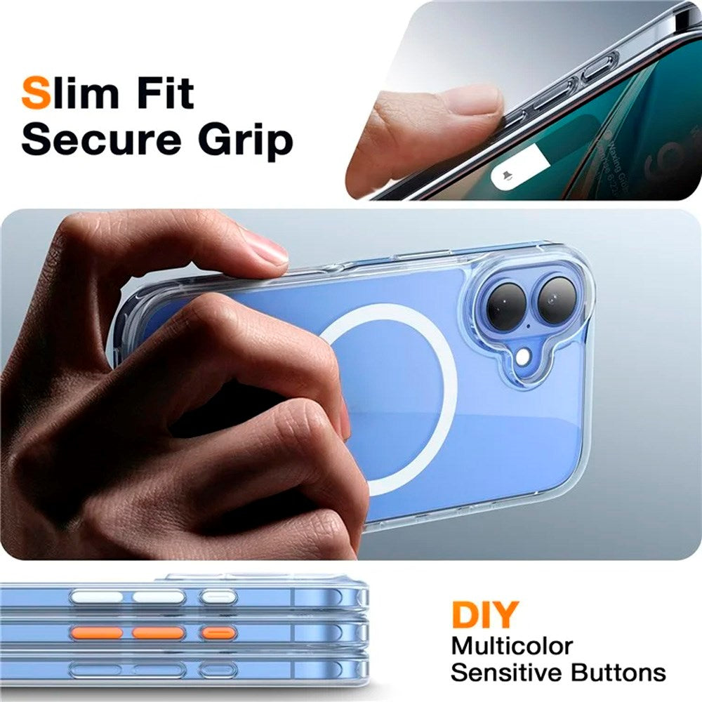 Tillverkat av flexibel plast ger det effektiv stötabsorbering vid fall, medan inbyggda MagSafe-magneter säkerställer korrekt placering på laddare och tillbehör.