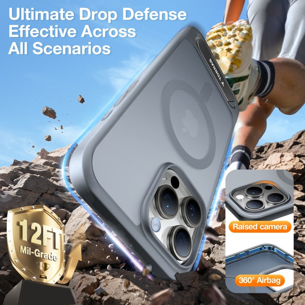 TORRAS iPhone 16 Pro Hybrid Skal m. Ställfunktion - MagSafe Kompatibel - Grå är i restorder och kommer att skickas så snart den är tillbaka i lager.