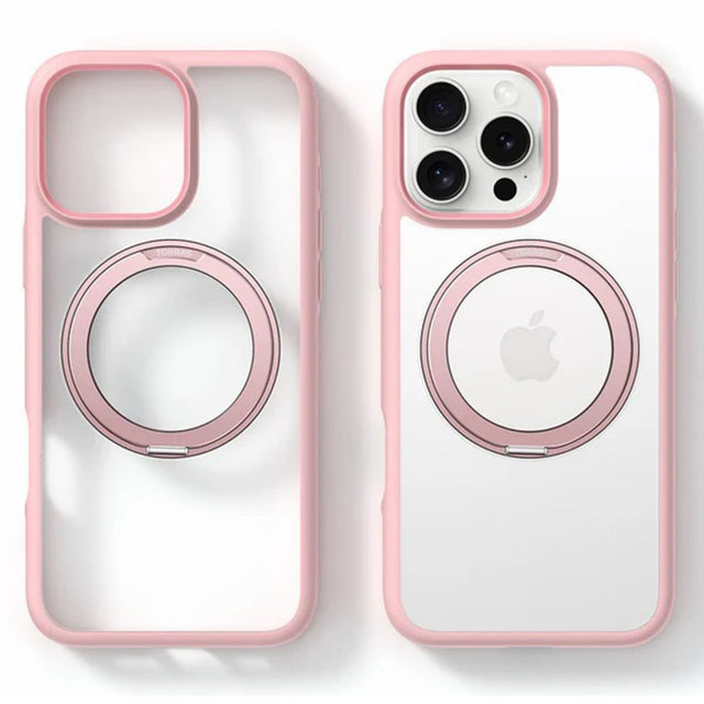 iPhone 16 Pro Hybrid Plast Skal m. Roterbar Kickstand Ring - MagSafe Kompatibel - Transparent / Rosa