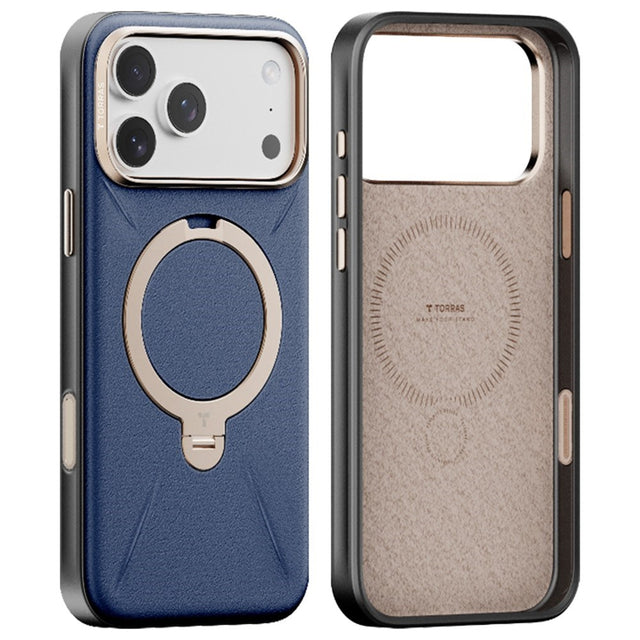 Ge din iPhone 17 Pro en stilren look och pålitligt skydd med detta TORRAS Ostand Spin Konstläder Skal.