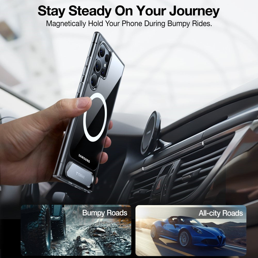 Samsung Galaxy S24 Ultra Hybrid Skal m. Kickstand - MagSafe Kompatibel - Genomskinlig