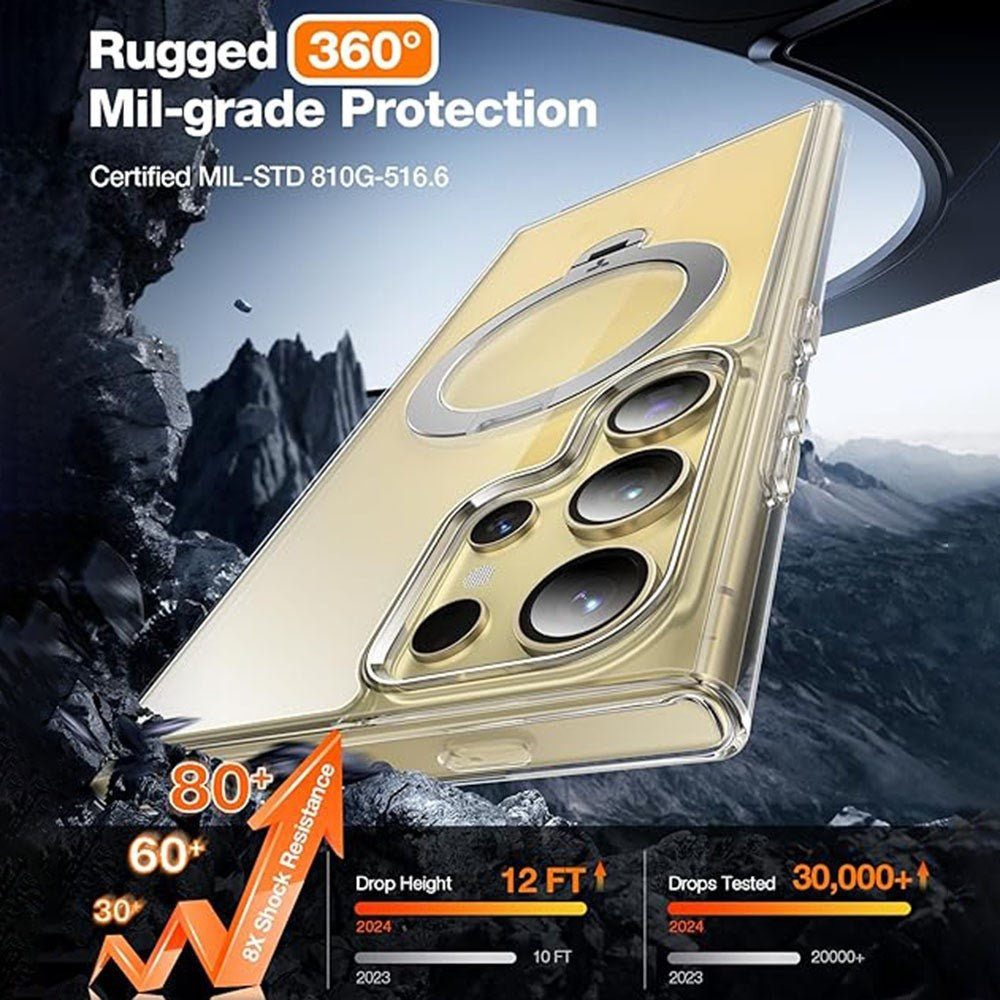 Samsung Galaxy S24 Ultra Hybrid Skal m. Roterande Kickstand - MagSafe Kompatibel - Genomskinlig