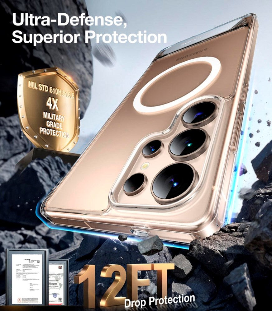 Samsung Galaxy S25 Ultra Hybrid Skal m. Ställfunktion - MagSafe Kompatibel - Genomskinlig
