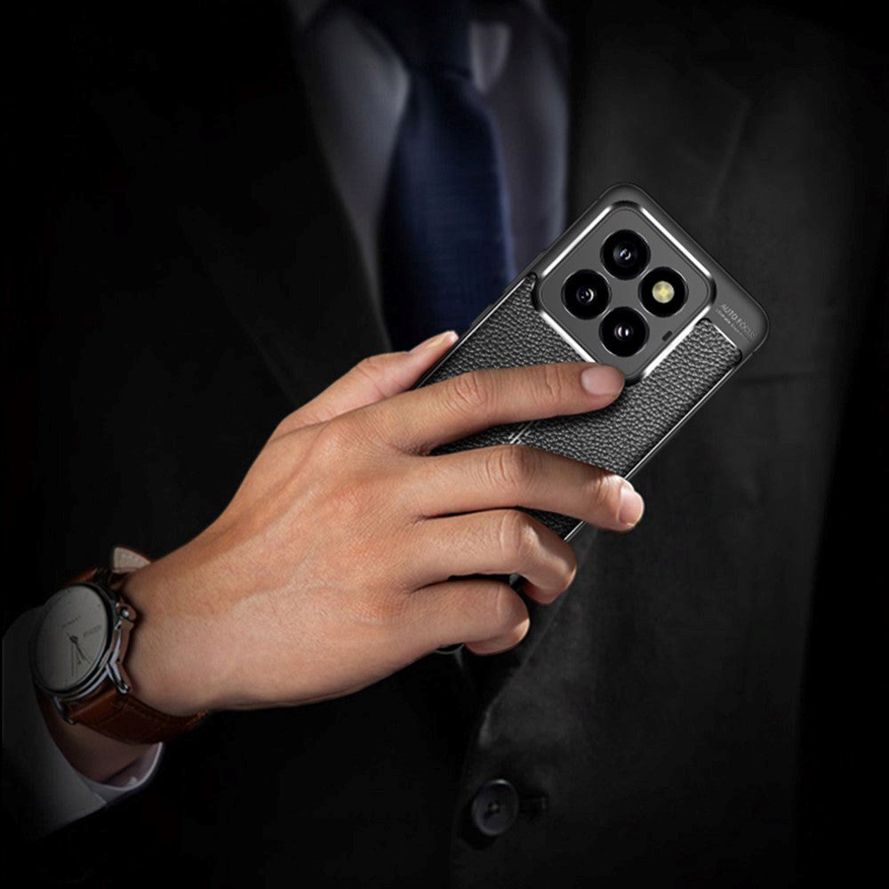 Xiaomi 14 Pro Flexibel Plastskal Litchi Struktur - Svart