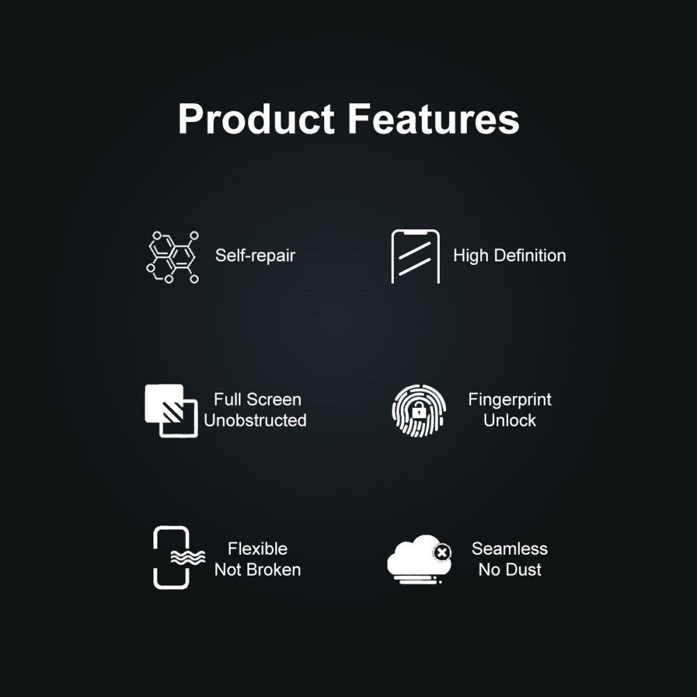 Tack vare full limtäckning sitter skärmskyddaren säkert på plats och skapar en sömlös bindning över hela skärmens yta. En av de mest imponerande funktionerna är den självreparerande teknologin, som automatiskt läker mindre repor och bubblor inom 48 timmar, vilket säkerställer att din skärm alltid ser ny och oskadd ut.